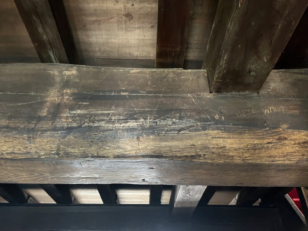 ▼現役で犬山城を支えている戦国時代当時の柱。(2026年2月撮影)